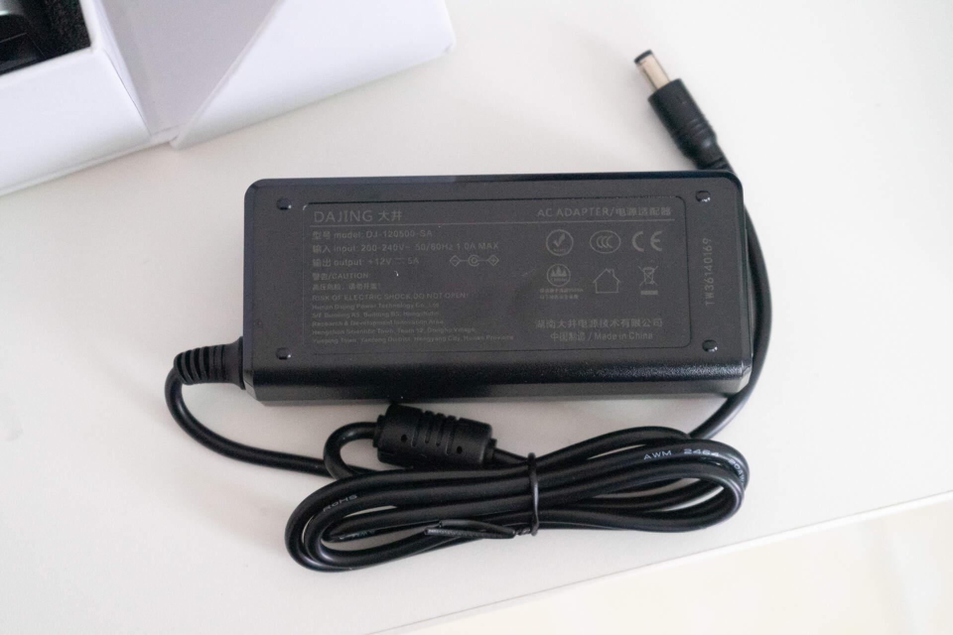 除機器外,另有說明書以及電源,電源是12V5A DC,60瓦功率,體積稍大,如果能換成那種小電源就很棒了,不管是放弱電箱還是哪兒都不占地。