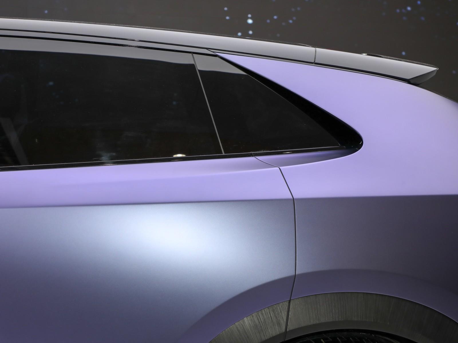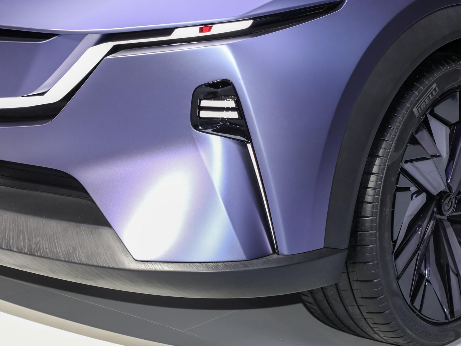 前臉部分依舊是標志性的上格柵,扁平的造型有著發光馬達車標,上方加入黑色裝飾條下方則有彎折的燈帶引出了扁平的日行燈組,遠近光燈可以看到下方呈分體式結構,這樣確實與深藍S7相似,梯形下格柵尺寸巨大,有著不錯的運動感,車身側面新車則采用了相對地下運動的SUV線條,車頂略帶下墜,撞色車身不會缺席,D柱處有著獨特的圓弧狀過渡設計,并引出了進氣的裝飾,顯得相當的運動,簡潔動感腰線,大尺寸輪轂等元素也都不會缺席,虛擬后視鏡提升了科技的感覺。