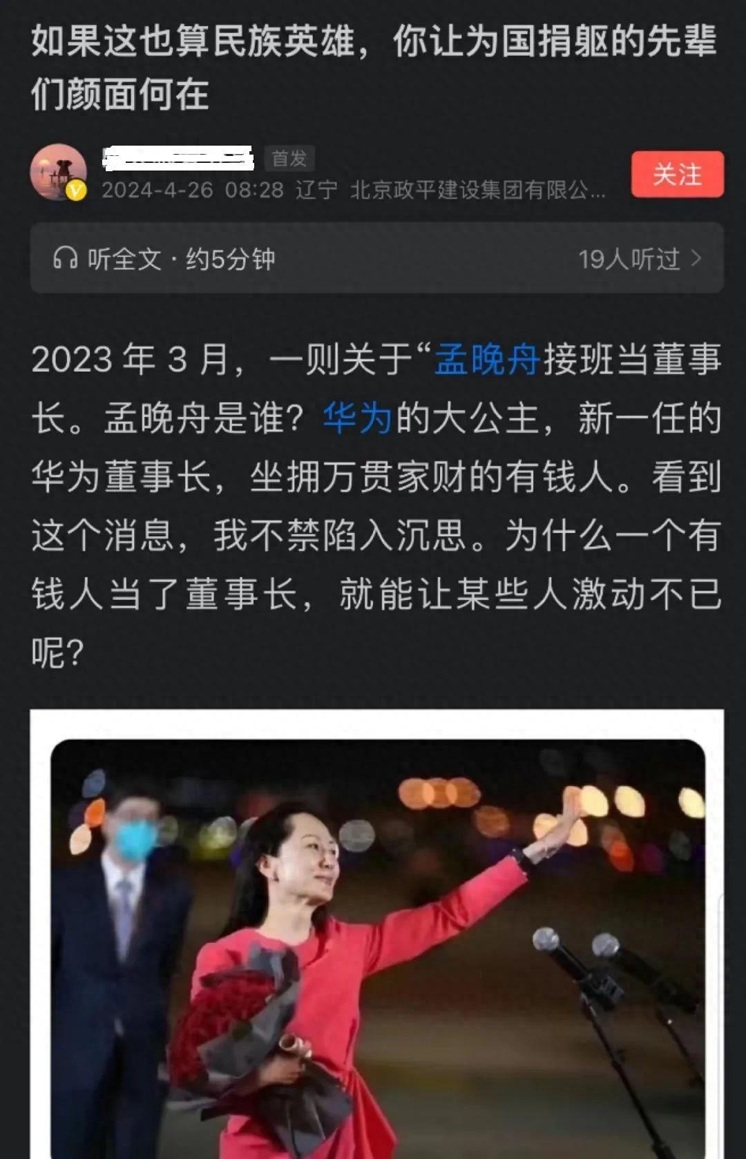 如果任正非孟晚舟也能稱之為英雄,就是對地下躺著的先烈的侮辱。