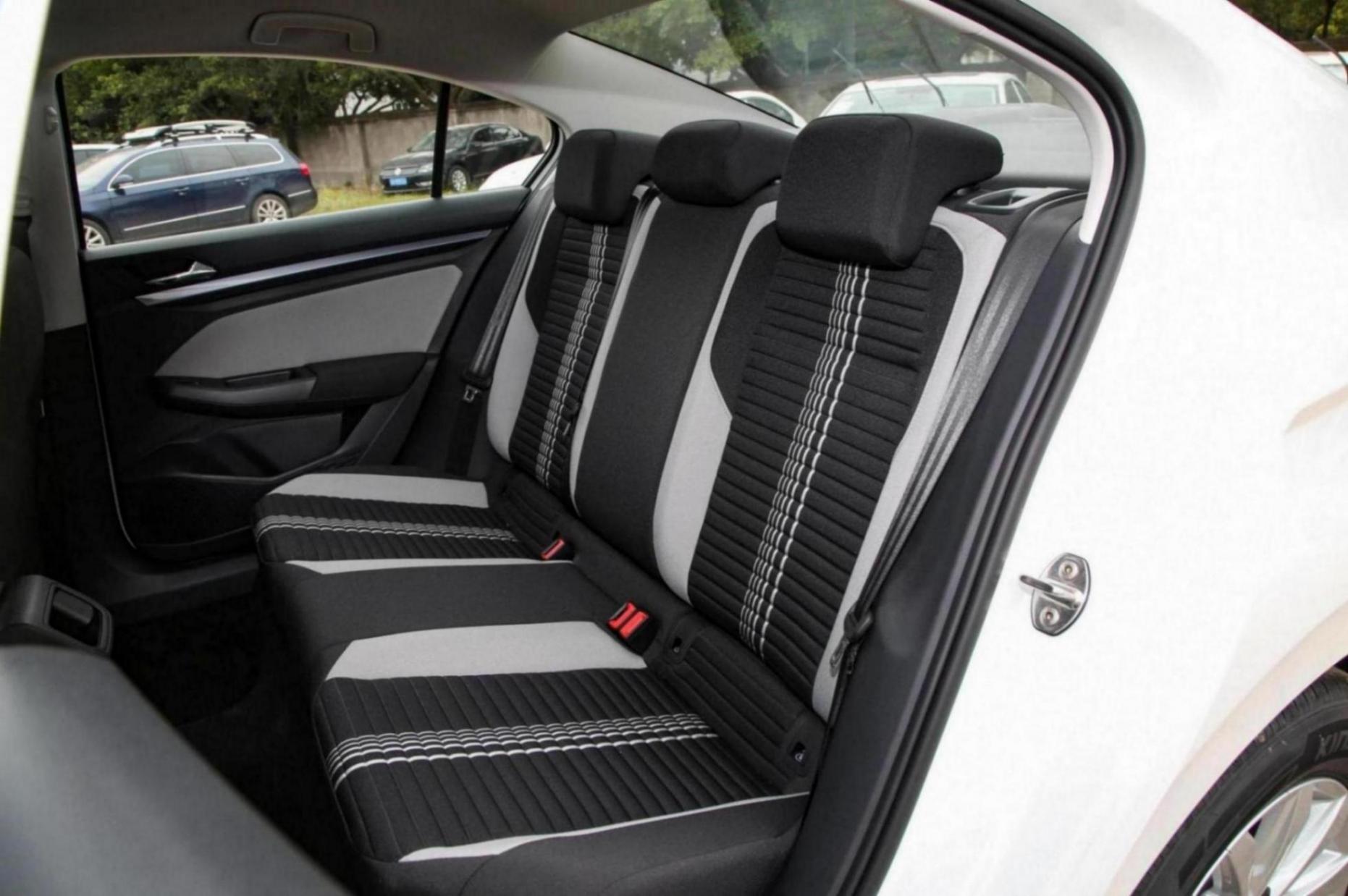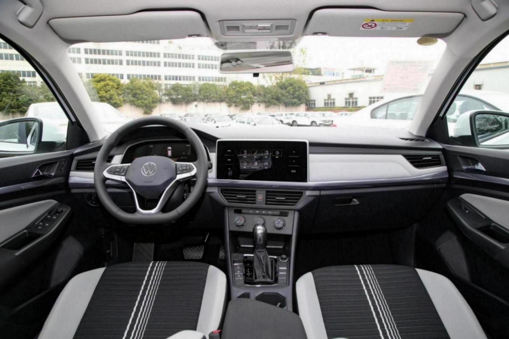 側面來看,這款車的空間表現不錯,彰顯出不錯的線條感,車尾造型凸顯運動感,平直的腰線由前到后貫穿車身,翼子板側裝配一段用于提升辨識度的簡單徽標,15英寸的低風阻鋁合金輪轂雖然尺寸變小了,但視覺上還是能展現出大眾家族化的精致立體感。