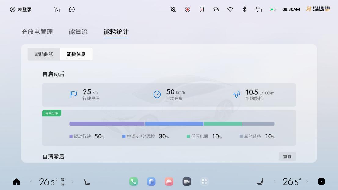 此外,還新增能量能耗分布顯示,可以將車輛的能量消耗按照系統模塊進行統計顯示,使駕駛員能夠更加明確地看到各個系統消耗地能量百分比,電耗分配一目了然。