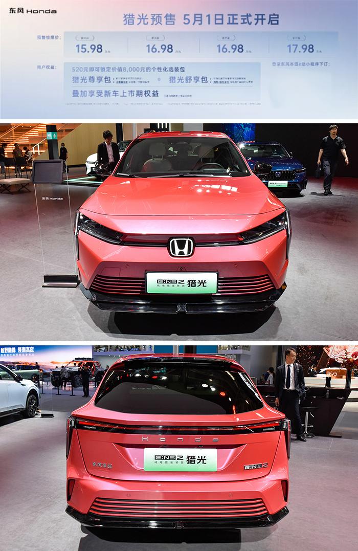 東風(fēng)本田全新中型車獵光e:NS2在本屆車展首發(fā)亮相,并正式開啟預(yù)售,新車共推出四款車型,預(yù)售價區(qū)間為15.98萬~17.98萬元,有望在年內(nèi)正式上市。現(xiàn)在下訂只需520元即可享受價值8000元的獵光尊享包或舒享包,用來滿足您的個性化需求。當(dāng)然,在本田展臺您還能看到攜手MUJI無印良品的定制版車型。