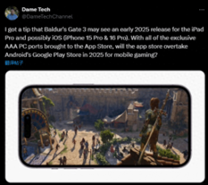 據推特消息人士Dame Tech透露,到2025年初,我們可以在iPad Pro和iPhone 15 Pro系列上玩到《博德之門3》,且鑒于蘋果過去會在9月份推出新機型,這可能也意味著《博德之門3》也將在iPhone 16 Pro系列上出現,并有望獲得更好的性能。