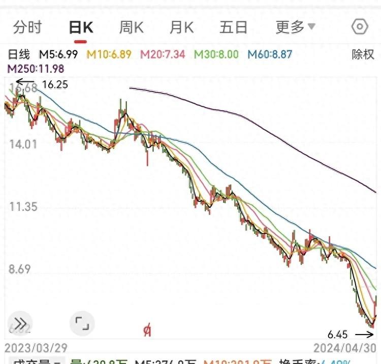 第一張圖,是萬科的走勢,周K一樣是單邊震蕩下行。雖然間或有反彈,但從總體走勢上看,每次買入都是錯誤的。
