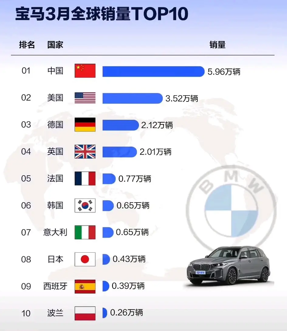太難了!寶馬在華銷量下跌,在全球汽車銷量榜卻很不錯,美國超3萬輛、英國德國超2萬。