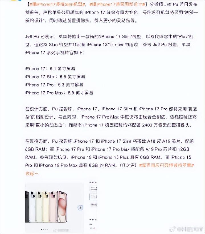評論炸了!16還沒發(fā)布,蘋果曝iPhone17將推Slim機型