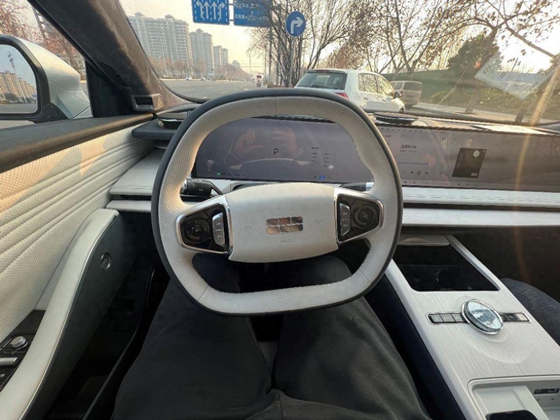 內飾第一眼看還是比較炫酷的,大長屏幕還是比較有特點的,但中控其他地方就沒太強的設計感了,做工用料倒是挑不出什么毛病。車機系統表現好評,無論是響應還是菜單邏輯都挑不出什么問題,整個大屏里的信息一起轉還是挺炫酷的,另外如果能給副駕駛前面的部分加個防窺就更好了。不過中間的旋鈕按壓操作居然是更改主題這種不常用的功能,有點無語。