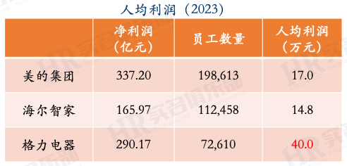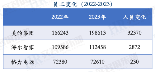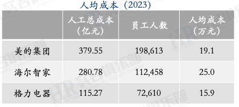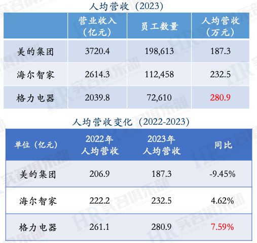 根據2023年財報,比較三個家電大廠的營收、員工薪酬與人效。
