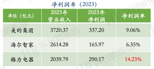 再看凈利潤率,格力凈利潤是三家中最高的,達14.2%。
