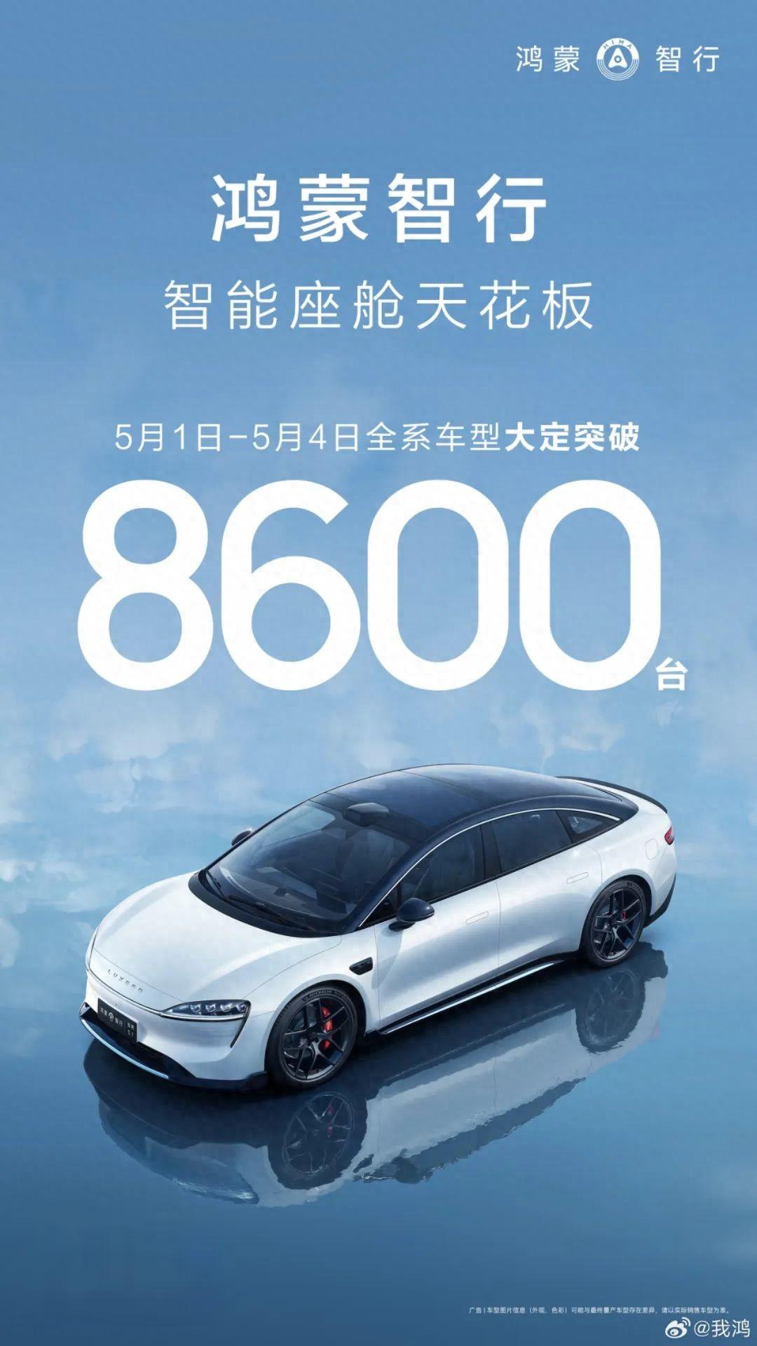 戰(zhàn)報(bào)顯示,華為智選車鴻蒙智行5月1日-4日全系車型大定突破8600臺(tái),預(yù)計(jì)今日結(jié)束也會(huì)公布假期5天的數(shù)據(jù)。