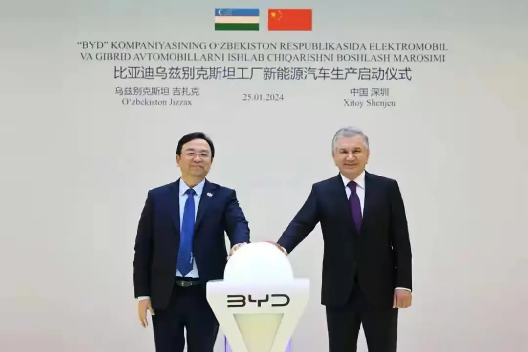 比亞迪在亞洲的工廠進度最快,今年1月,烏茲別克斯坦共和國總統沙夫卡特·米爾濟約耶夫與比亞迪集團董事長兼總裁王傳福在深圳共同出席“比亞迪烏茲別克斯坦工廠生產啟動儀式”,該工廠生產的首車——比亞迪宋PLUS DM-i正式投產下線。