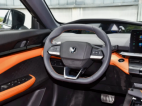 來到車內,內飾布局科技感滿滿,采用了比較前衛的內飾布局,車內是橙色和黑色的雙拼配色,中控臺覆蓋了大量軟性材質,細節處加入了鋼琴烤漆面板點綴,中間搭配了10.1英寸的懸浮式中控屏,屏幕顯示清晰度比較高,儀表盤則為10.3英寸的全液晶儀表盤,顯示的車輛信息比較全面,同時也提升了內飾科技感。