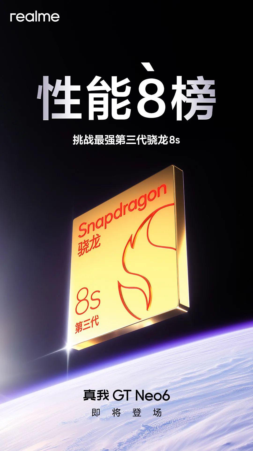 最近一個月機圈先后發布了新款新中端:一加Ace 3V、Redmi Turbo 3、真我GT Neo6 SE、iQOO Z9 Turbo,其中兩款搭載驍龍7+ Gen3,兩款搭載驍龍8s Gen3,現據最新消息,realme除了搭載驍龍7+ Gen3的GT Neo6 SE外,搭載驍龍8s Gen3的真我GT Neo6也即將發布。‍