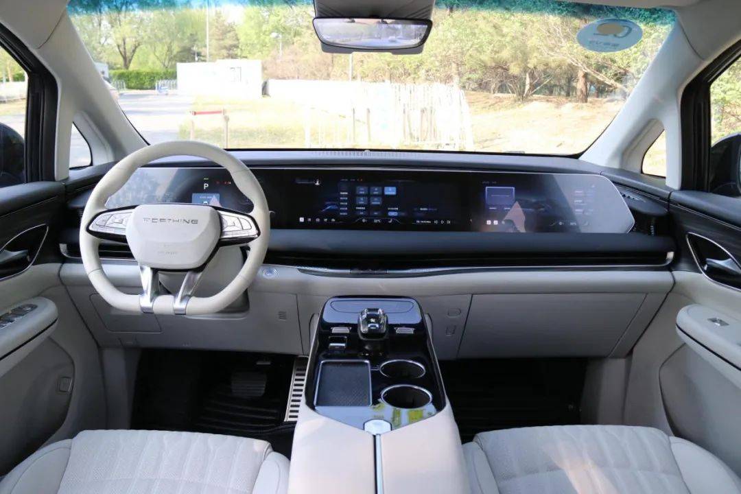 主駕駛的位置為10向可調電動座椅,包含了加熱、通風和8點位按摩功能,并且自帶座椅記憶。副駕座椅則為家庭女主人專門設計,支持8向電動調節,還可通過語音或手機一鍵調節至最舒適的半躺位置,同樣配備加熱、通風和8點位按摩功能,搭配五種預設按摩模式。