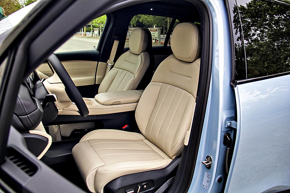 全車座椅是另一個“優勢”,搭載蔚來自研高端座椅平臺,標配20向調節,含懸浮式4向可調節頭枕。女王副駕擁有多達22向調節,但需要選裝,而且在行駛中為了安全無法使用“女王”模式。