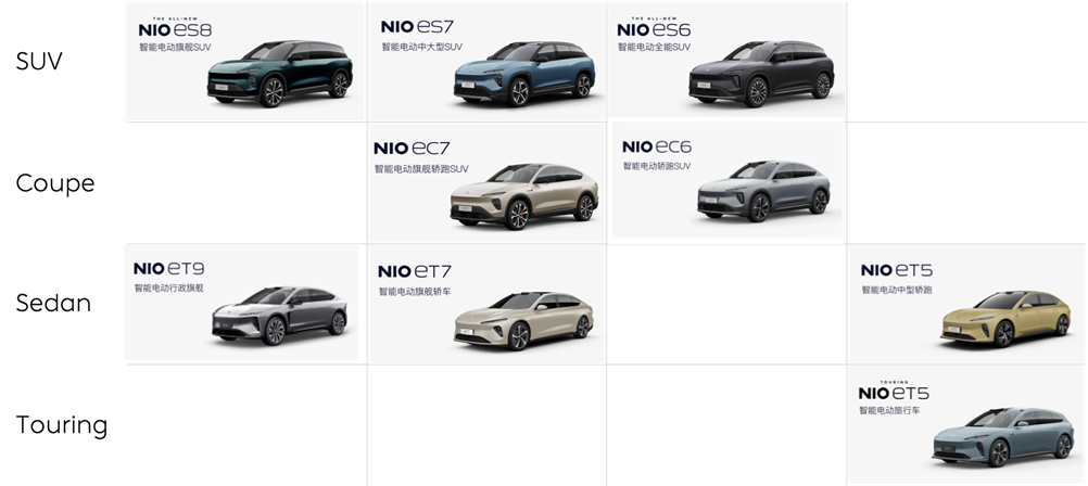 在產(chǎn)品方面,蔚來(lái)的核心產(chǎn)品是純電的智能電動(dòng)汽車(chē),“智能化”在產(chǎn)品上的體現(xiàn)就是自動(dòng)駕駛,因此蔚來(lái)在智能駕駛上投入的資源很多,這也是蔚來(lái)的核心競(jìng)爭(zhēng)力。下圖展示了蔚來(lái)目前已推出的 9 款車(chē)構(gòu)成的產(chǎn)品矩陣。