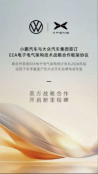 今年4月,小鵬汽車與大眾汽車集團簽訂EEA電子電氣架構技術戰略合作框架協議,雙方將基于小鵬汽車最新一代電子電氣架構,聯合開發并將其集成到大眾汽車在中國的CMP平臺上。雙方聯合開發的電子電氣架構預計將從2026年起應用于在中國生產的大眾汽車品牌電動車型。