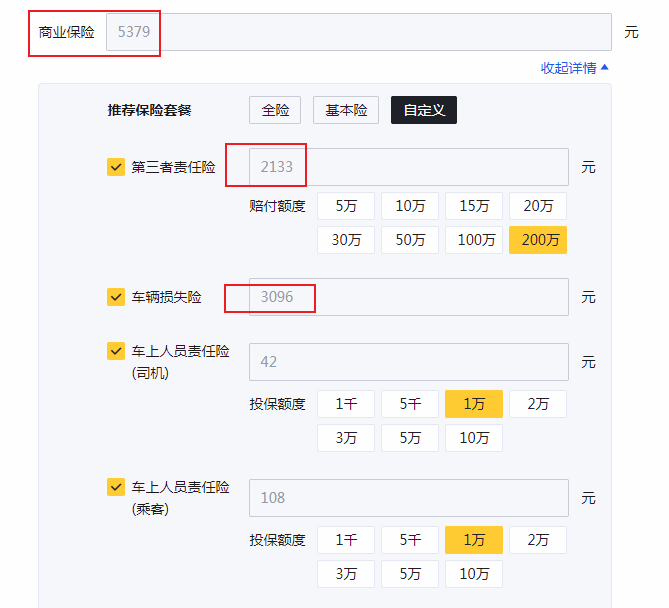 這款車我們按照第三方責任險為200萬賠付額來計算,價格為2133元,車輛損失險為3096元,車上人員責任險(司機+乘客)賠付額為1萬來計算共150元, 商業(yè)險共計5379元,再加上交強險950元,車船稅400元。一共為6729元。(每個車主的購買需求和保險公司的銷售政策以及車輛年限,保險價格會有變動,最終以實際為準。)