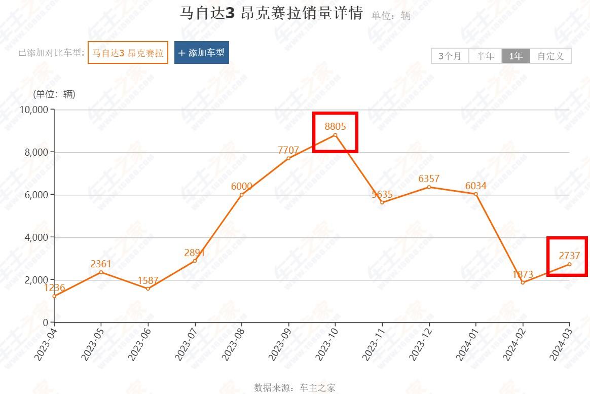 最后,長安馬自達旗下目前在售的4款車型,實際的銷量表現其實也都挺差。就拿3月份零售銷量數據舉例來說,馬自達3 昂克賽拉僅賣出2737輛,而在去年10月份,這車可是還取得過8805輛新車月銷量的好成績,可現在卻直接銷量腿斬,這不免讓人感到唏噓不已。