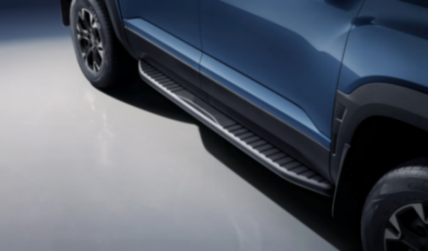 來到車身側(cè)面,雙排座椅布局保證了實用性,也就是說真要家用也沒問題,畢竟海外市場的皮卡車型和國內(nèi)SUV車型用途基本一致。而且側(cè)踏板、車頂行李架等配置也沒有缺席,進一步提升出行便利。不過車尾就沒什么驚喜了,燈組為縱置設(shè)計,與前大燈呼應(yīng)有著不錯辨識度,而尾部線條主打一個方正。值得一提的是,前不久比亞迪官方又一次透露新車官圖,我們看到了輪轂樣式與方程豹豹5相同,型號為佳通XROSS HT71,還是挺符合這臺皮卡的身材。