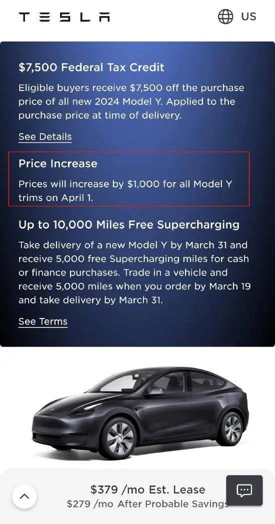 所以從4月1日起,特斯拉在全球開展了漲價,美國市場Model Y車型的價格上調1000美元,歐洲地區Model Y的價格也提高了約2000歐元或等值當地貨幣,當然中國市場也參與了本輪漲價,上漲了5000元。通過漲價來維持利潤的增長。