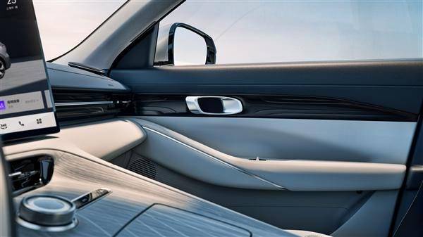 新車的米色內飾同樣看上去簡約清新,但也高級感十足。車內的大屏集成了一系列功能,但也保留了一些功能實體按鍵,非常實用。車內的門把手、車窗升降按鍵等均采用了金屬鍍鉻裝飾,高級感和檔次感十足。