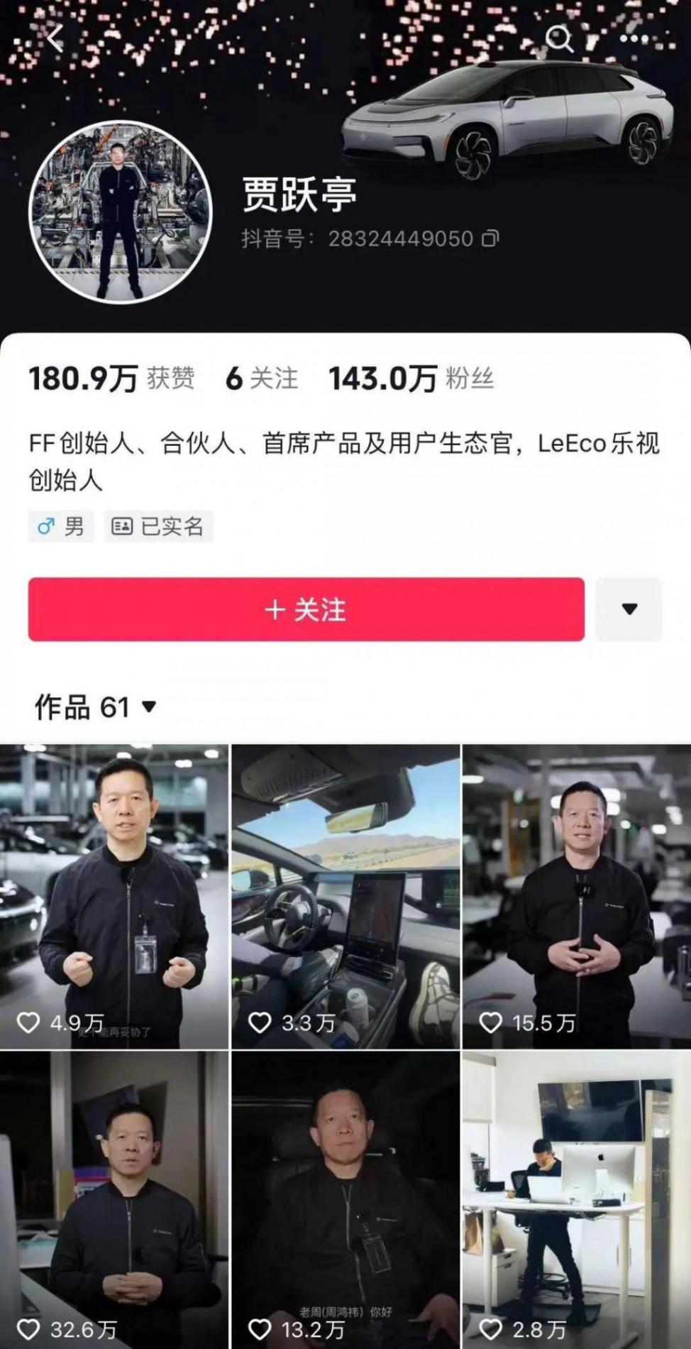 其實,進入4月以來,賈躍亭多次以視頻的形式對外發聲,試圖重塑個人IP,此前公開回應360創始人的回國喊話,也引起了不小關注。截至發稿,賈躍亭微博粉絲量達1517萬,抖音粉絲量達143萬。