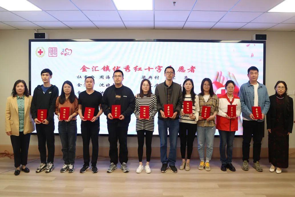 為2023年度金匯鎮(zhèn)先進(jìn)基層紅十字服務(wù)站負(fù)責(zé)人頒發(fā)榮譽(yù)證書(shū)。