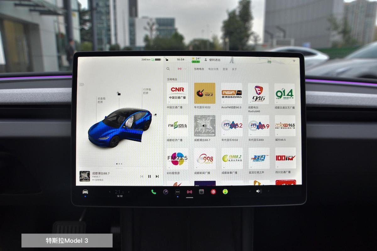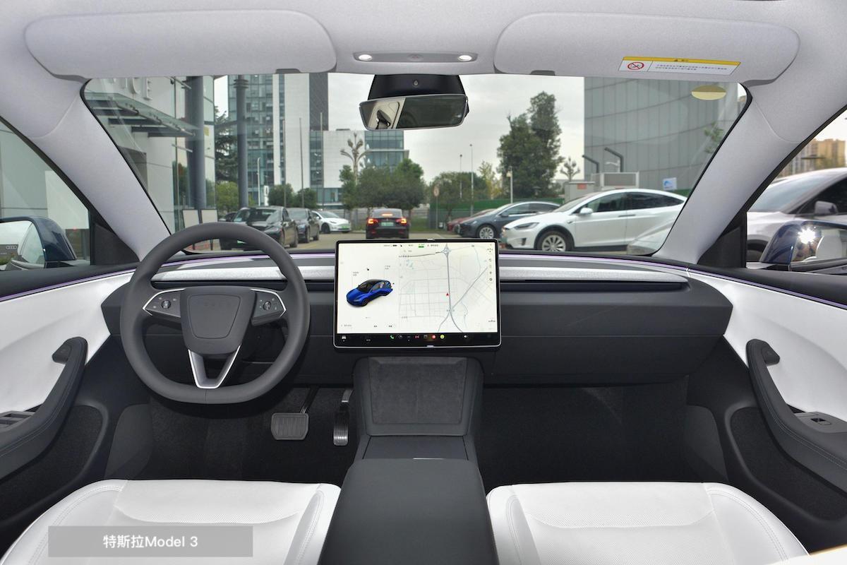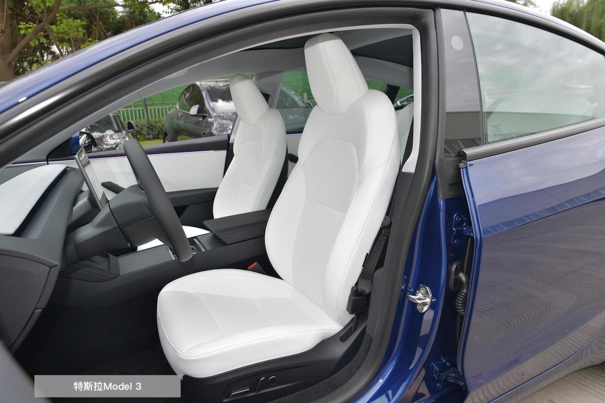 兩臺車都采用了極簡的中控布局,相對來說,只提供了一塊15.4英寸觸控屏的Model 3要來得更干脆,薄而平的中控臺嵌入了隱藏式出風口,上層現(xiàn)在還加入了狹長的256色氛圍燈光帶,真皮的方向盤與仿皮的座椅,不算十分高級,但好在觸感也都還不錯。