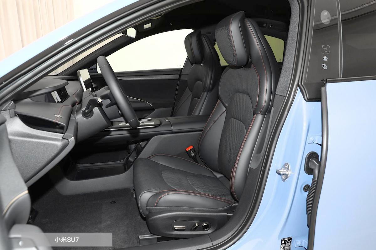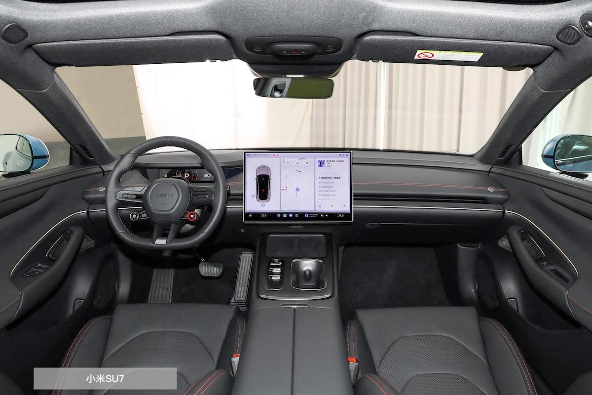 小米SU7則有著更加厚重的軟包,7.1英寸嵌入式液晶儀表與16.1英寸觸控屏也覆蓋了絕大部分車載系統(tǒng)操作,它同樣帶有狹長的上層氛圍燈帶與中央貫穿出風口,在同樣保持極簡的情況下,一些傳統(tǒng)控制設計會讓它更易用。而且像我們所說的,小米SU7雖然沒有標配真皮,但卻提供了更廣泛、更厚重且?guī)к浱畛涞亩鄥^(qū)裝飾,加上門板處與中控實現(xiàn)了的跨區(qū)分層連貫,座艙環(huán)繞感也更強了。