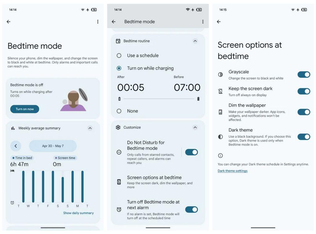 不過第三方應用無法更改谷歌數字健康應用程序在就寢模式期間的屏幕選項,無法調整屏幕飽和度、禁用 AOD、調暗壁紙和啟用深色模式等。